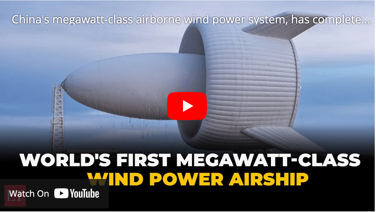 China has successfully tested the world’s first megawatt-class flying wind turbine, the S2000, a blimp-like airborne system developed by Linyi Yunchuan Energy Technology. Unlike conventional turbines mounted on towers or offshore platforms, the S2000 ascends to 6,560 feet (2,000 meters) to capture stronger, more stable high-altitude winds (check out the YouTube video).